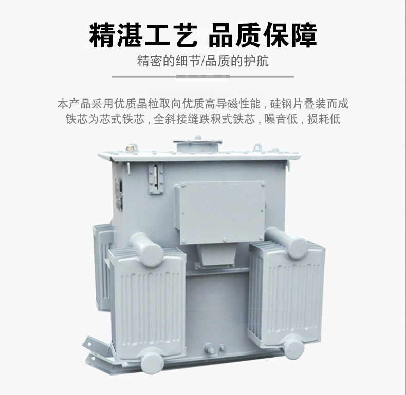 KS11系列10KV礦用變壓器KS11系列礦用變壓器,作為礦并的配電設備.該產品具有體積小,易下并,結構合理、損耗低.教熱性能好等特點。本系列產品采用優質的晶粒取向優質高導磁性能硅鋼片疊裝而成,鐵芯為芯式鐵芯,全斜接縫迭積式鐵芯,其鐵芯柱為多級圓截面,確保低噪音低損耗油箱結構堅固,箱壁兩側焊有高、低壓電纜接線盒,作為電纜接線之用,高壓線圈須有額定電壓士5 %的分接電壓,利用分接開關變換電壓變換電壓時.必須先切斷電源,然后去除箱壁上分接開關的風雨雙進行變換電壓變壓器低壓側允許"Y” 型接成693V或”D”型接成400V供電,在電纜接線盒內直接裝次級端頭引出六個瓷套供用戶改接變壓器吊裝利用焊在箱壁的吊攀,變壓器箱底均裝有拖撬,在拖撬上備有安裝孔,可供礦并需要時加裝礦車滾輪。